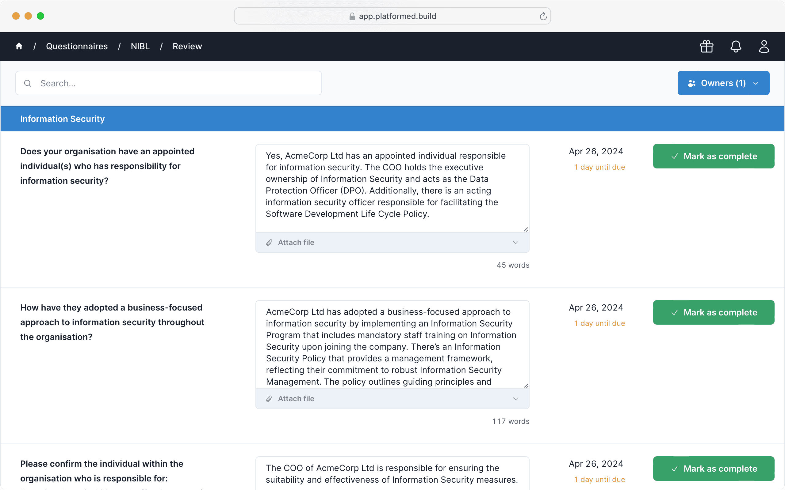 Platformed is purpose-built for speed, accuracy, and scale, powered by real AI that actually understands your content. Spend less time answering questionnaires and more time closing deals.