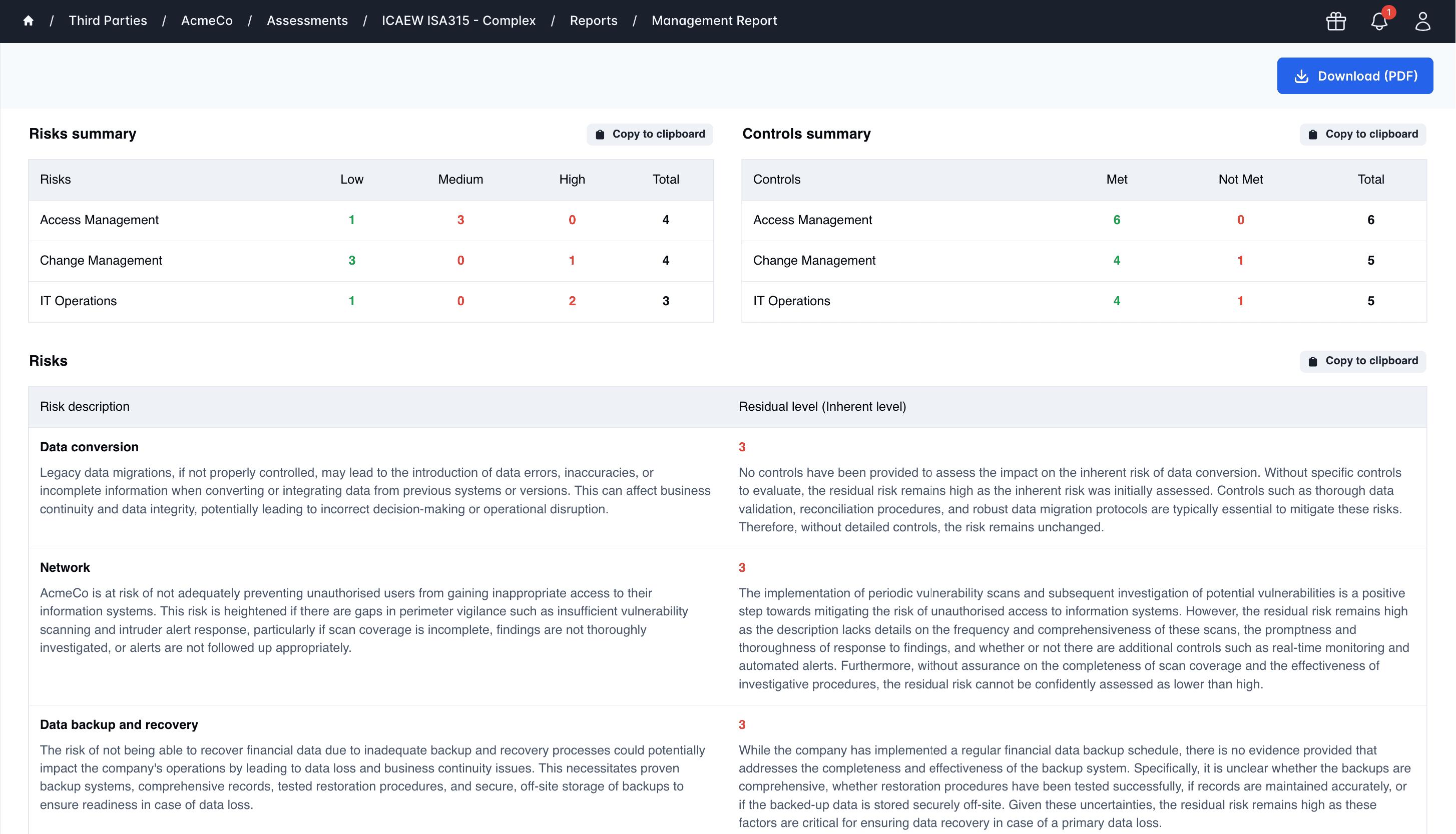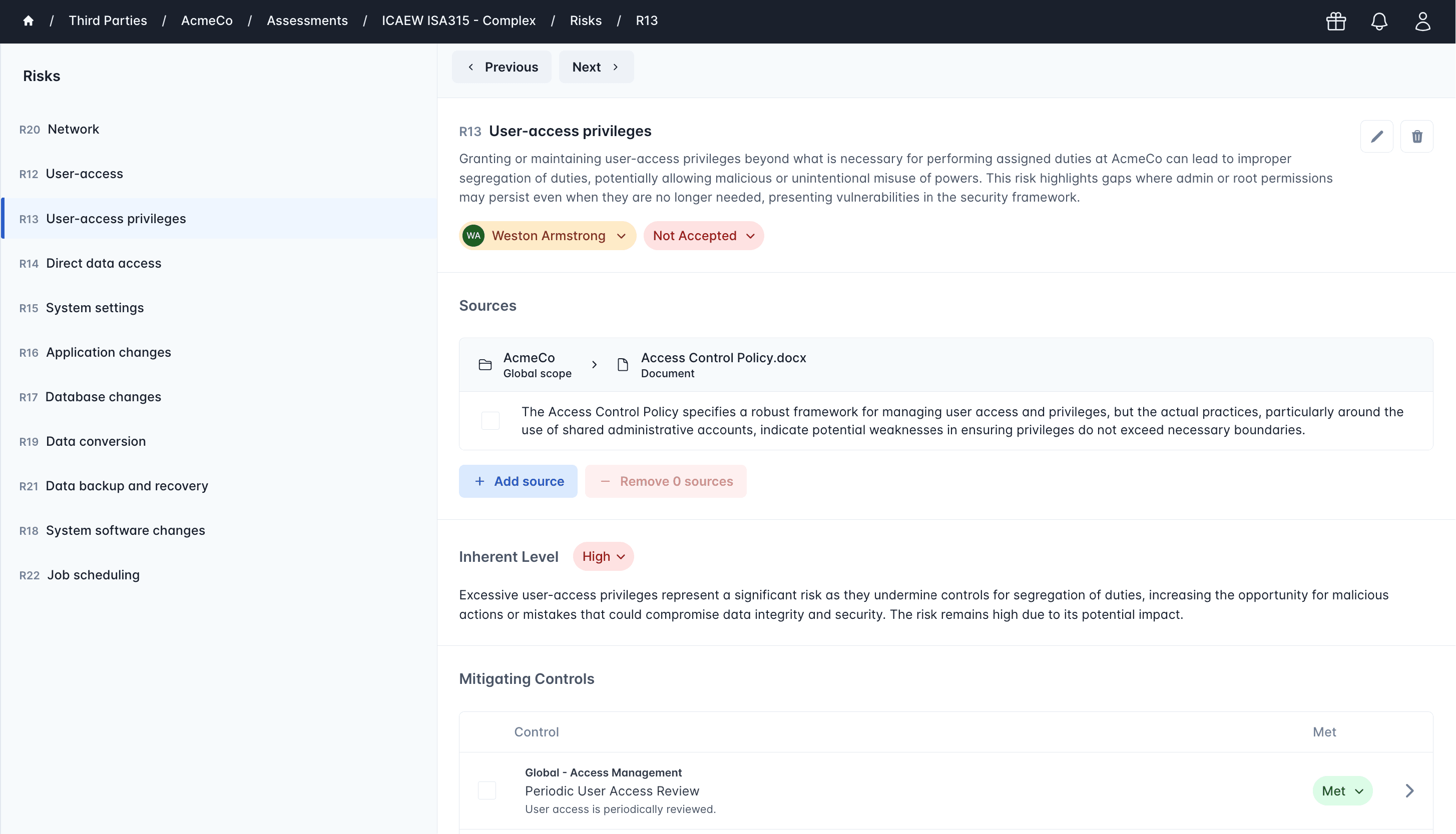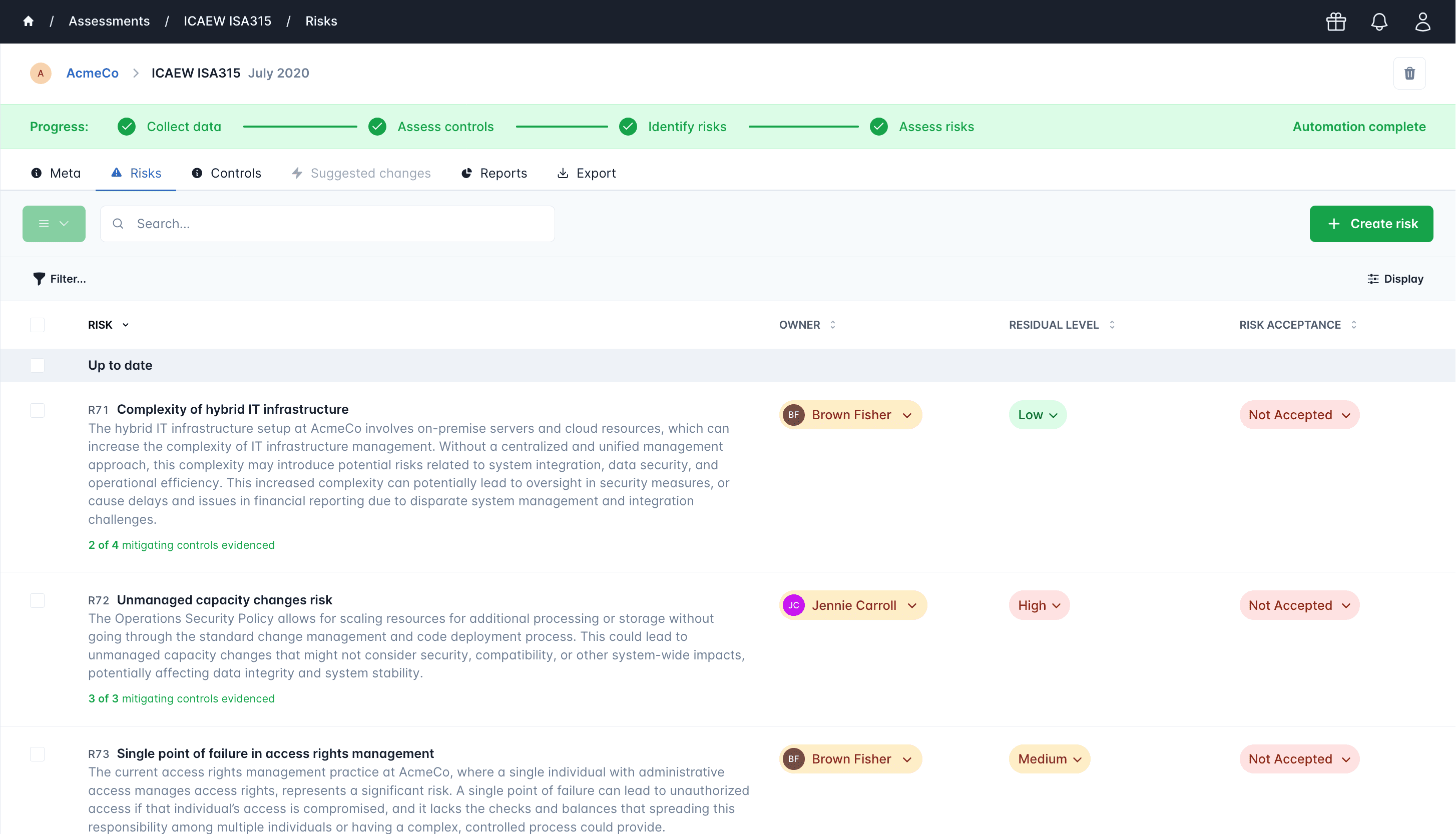 Free your team from repetitive control checks and manual risk mapping. Empower non-specialized auditors to deliver high-quality and consistent ISA 315 audits while reducing workloads.