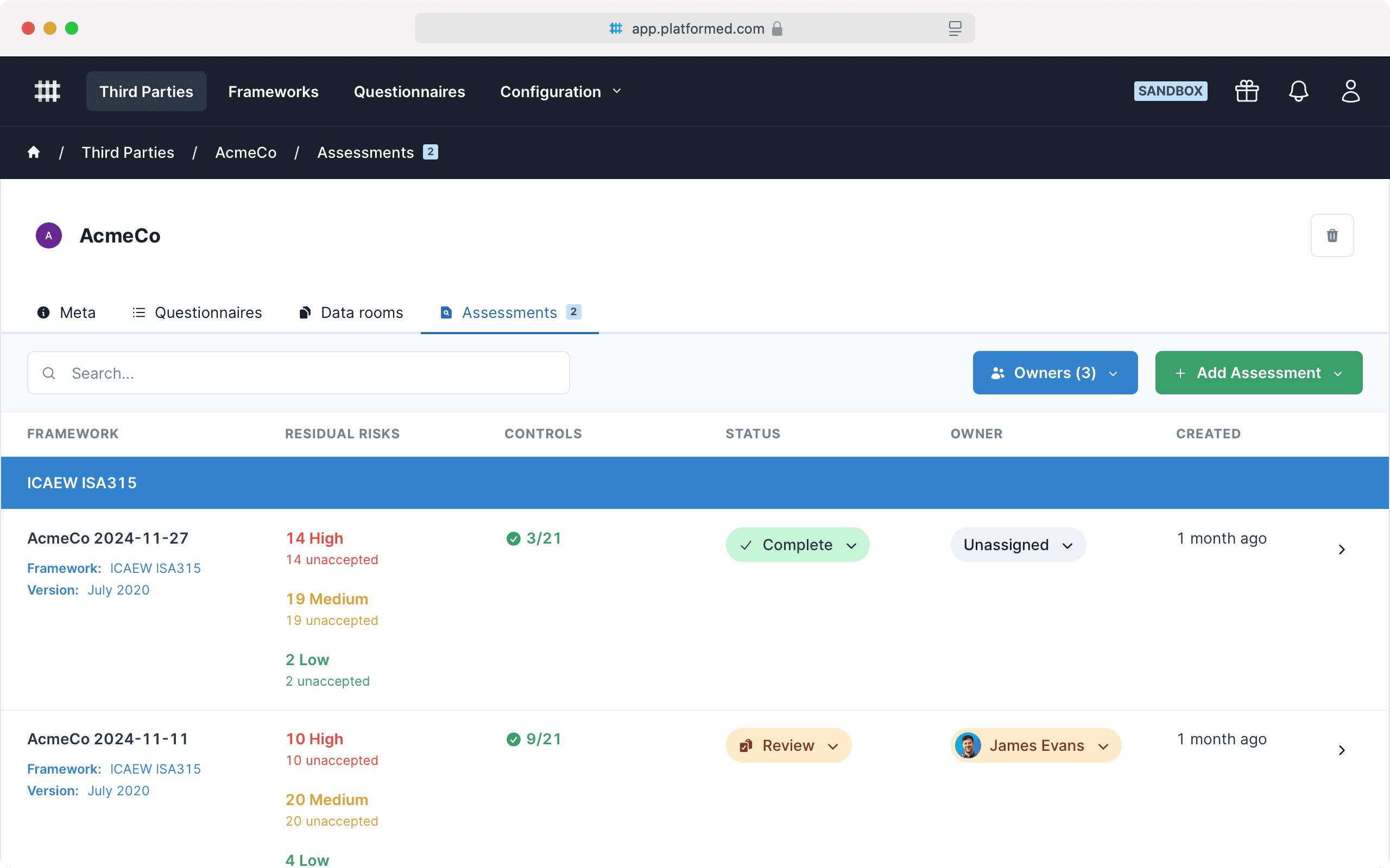 - Auditors can verify and override any part of the assessment or run reassessments as new evidence is added.