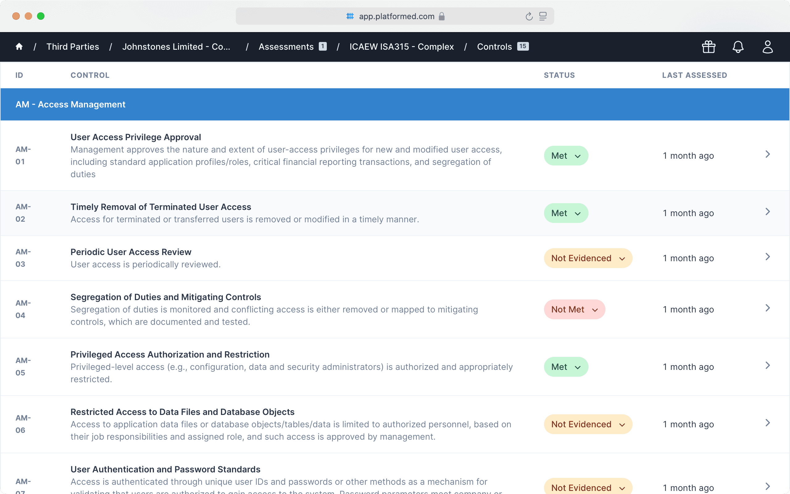 Streamline IT audits with efficiency and precision. Platformed’s AI helps financial auditors handle IT assessments like ISA 315 for non-complex clients, while enabling IT audit specialists to deliver consistent, high-quality evaluations for complex cases, even under tight deadlines.