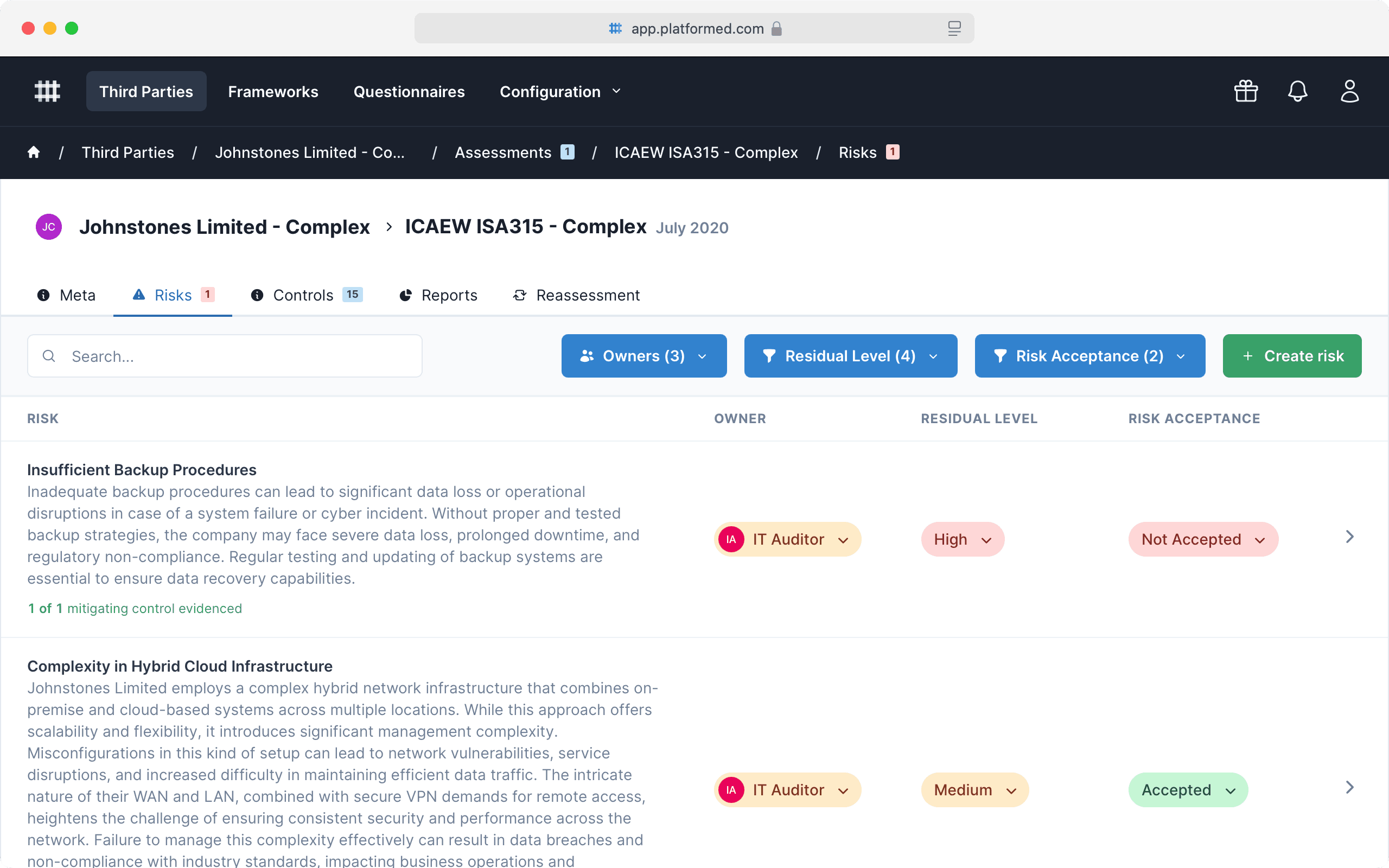 - Platformed’s AI system classifies client complexity, identifies risks, maps controls and delivers report-ready assets in minutes.