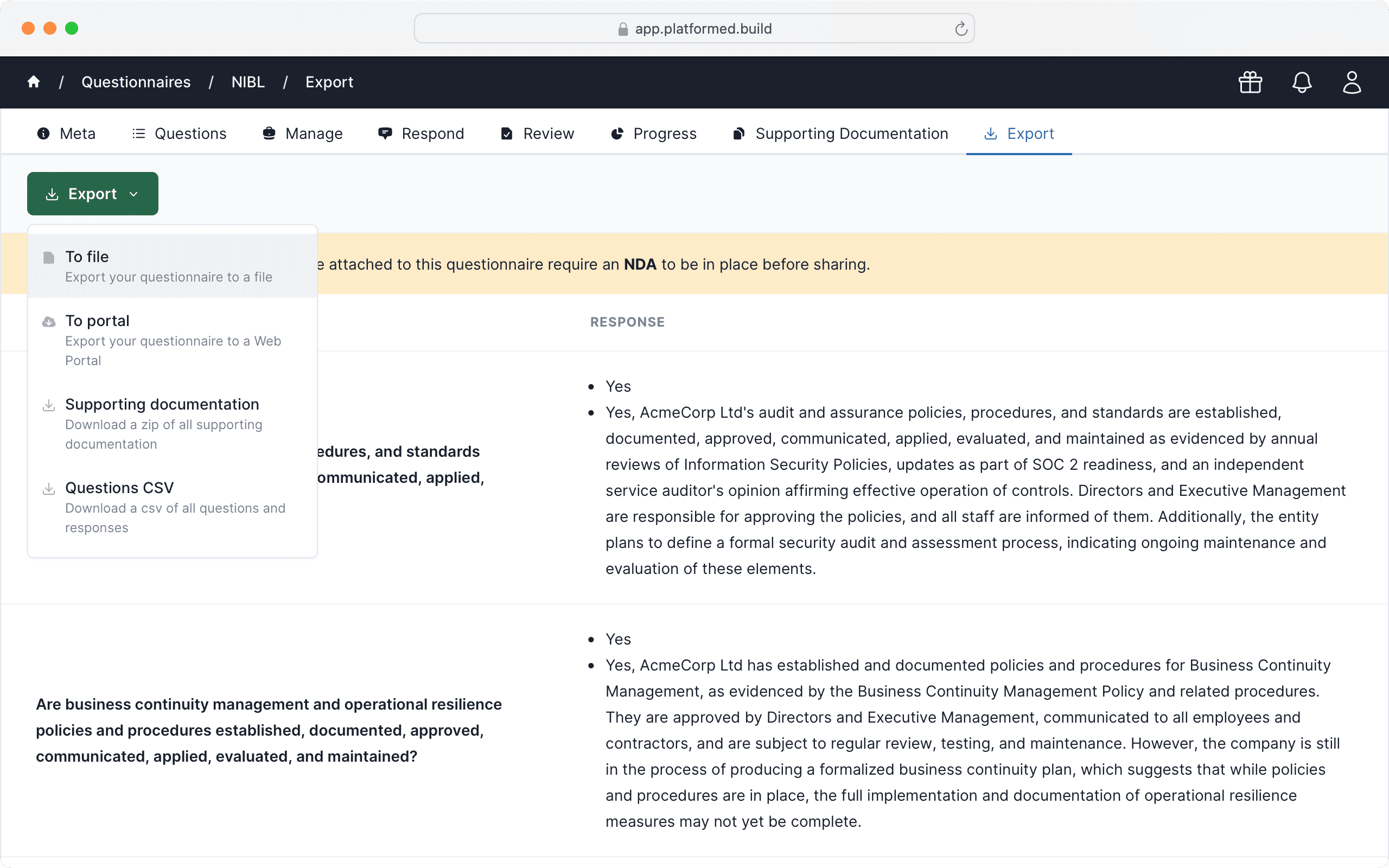 Platformed automates RFPs, RFIs, DDQs and SAQs - in whatever format they come.