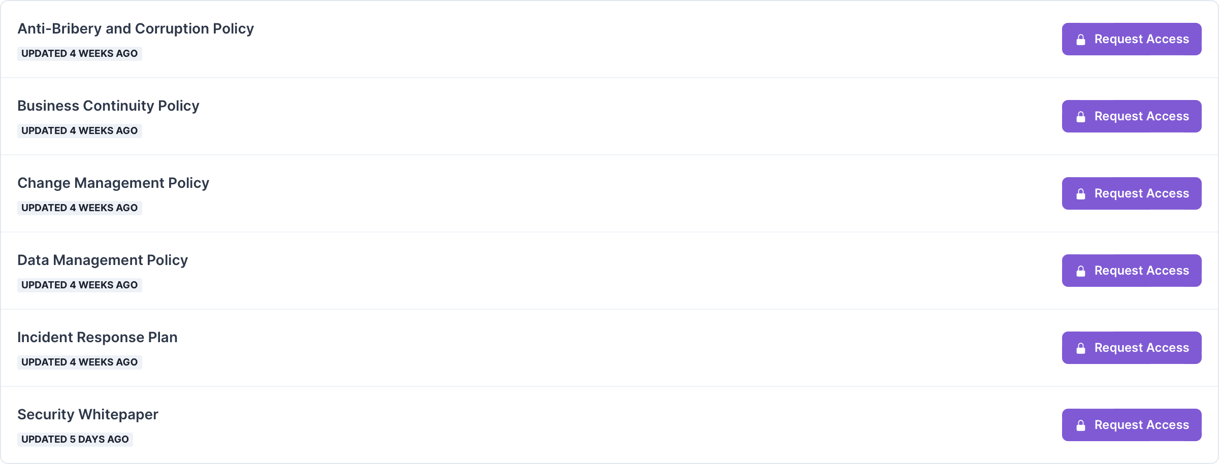 With built in NDAs and approval workflows, your customers and prospects can access the documents they need.
