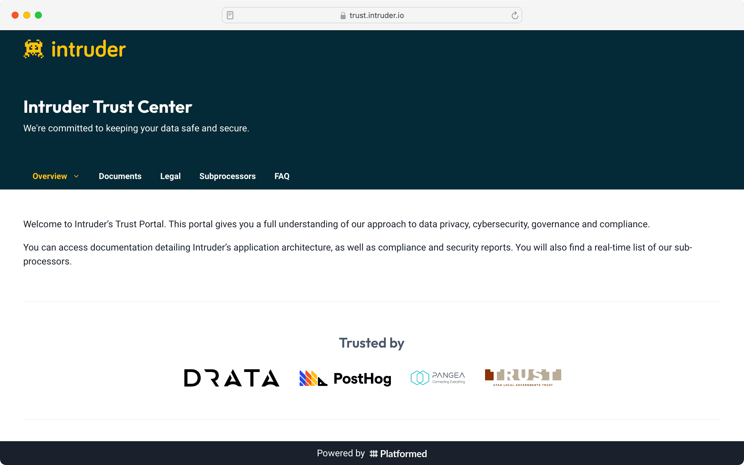 Launching a Trust Center for Intruder has been on my todo list for months, thanks so much to the team at Platformed for sorting us out with one!