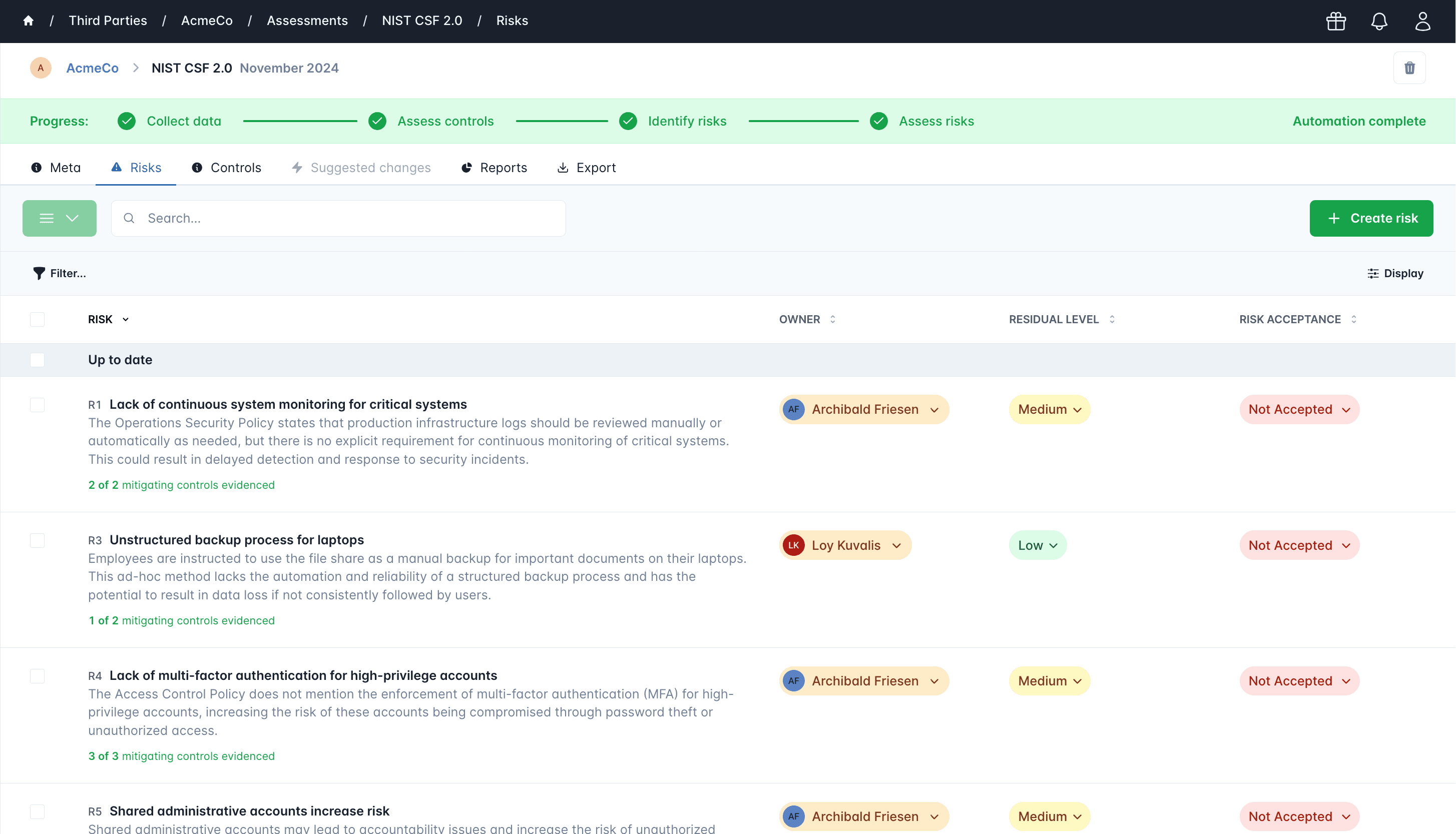 Frictionless Assessments - Platformed's AI system classifies complexity, identifies risks, maps controls and delivers reports in minutes